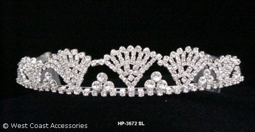 SILVER-PLATED; ALL CLEAR RHINESTONES TIARA.