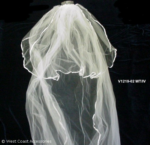 LONG BRIDAL VEIL WITH RIBBON EDGES; WHITE & IVORY. FIRST LAYER: 27" SECOND: 54"