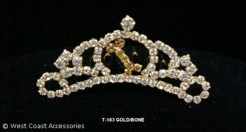GOLD-PLATED MINI TIARA WITH BONE DESIGN IN CENTER. AVAILABLE IN SILVER, LT. PINK.
