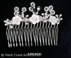 SILVER-WHITE BRIDAL COMB WITH PEARLS AND CRYSTALS.