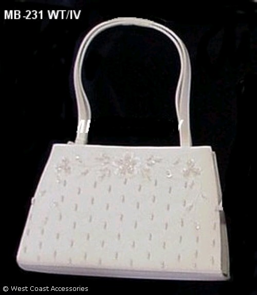 BRIDAL/PARTY MONEY BAG; WHITE OR IVORY; BEADED ORNAMENTS.