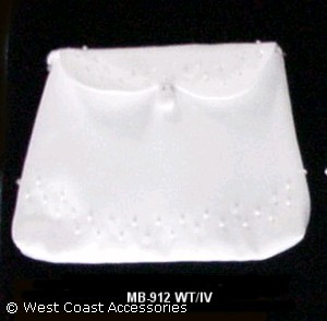 LITTLE GIRL'S PURSE; WHITE OR LIGHT IVORY; PEARLS.
