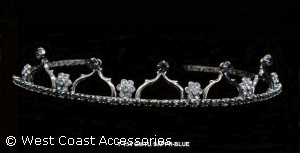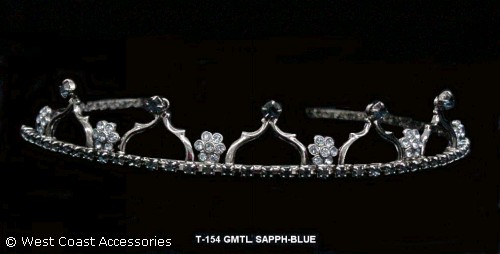GUNMETAL-PLATED; SAPPHIRE-BLUE RHINESTONES TIARA.