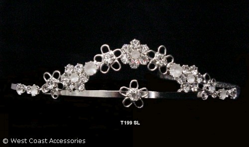 SMALL; SILVER-PLATED RHINESTONE TIARA; NO COMBS.