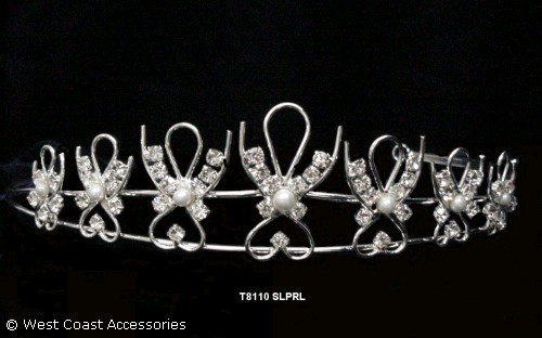 SILVER-PLATED; CLEAR RHINESTONES & PEARLS TIARA.