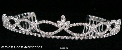 SILVER-PLATED; CLEAR RHINESTONES TIARA.