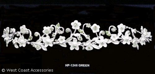 EPOXY STYLE; GREEN FLOWER SHAPES AND GREEN RHINESTONES.