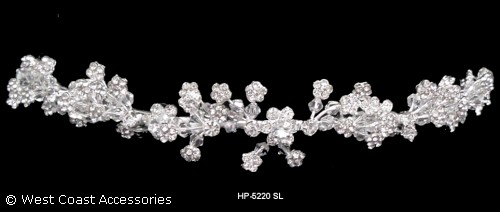 SILVER-PLATED; CLEAR RHINESTONES AND CRYSTALS HEADPIECE.