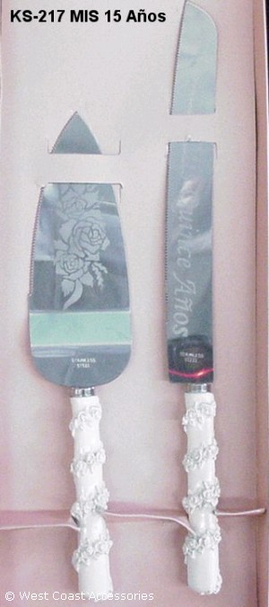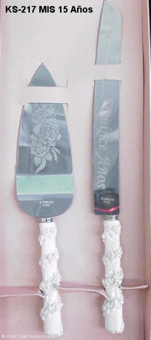 CERAMIC KNIFE SET; "MIS 15 A?OS" (SPANISH).