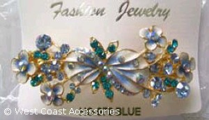 HAIR PIN WITH BARRETTE; BLUE RHINESTONES & DESIGNS.