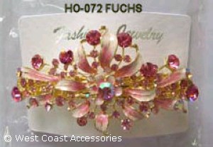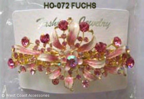 HAIR ORNAMENT WITH BARRETTE; FUCHSIA RHINESTONES & DESIGNS.
