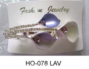 HAIR PIN WITH BARRETTE; LAVENDER RHINESTONES & DESIGN.