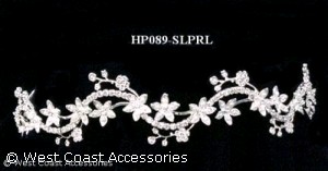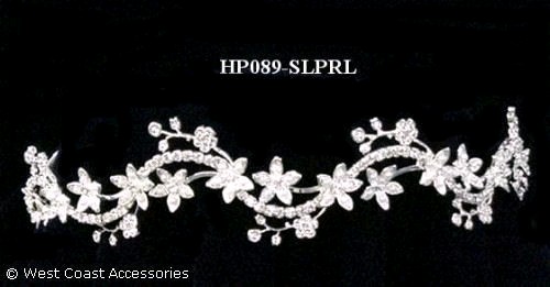 RHINESTONE TIARA FLORAL WT/SL PEARLS HEIGHT: 1 INCH