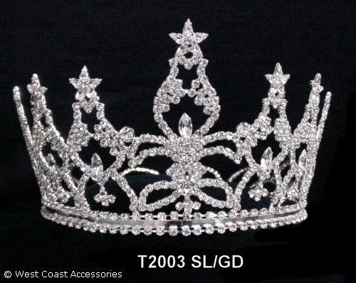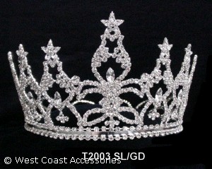 RHINESTONE CROWN SILVER/GOLD 4.5' HIGH dia: 6 1/2 back hei: 1/1/2