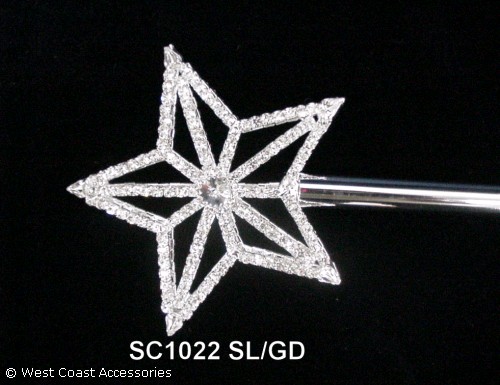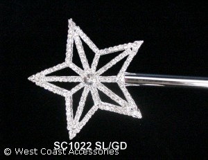 RHINESTONE SCEPTER, BIG STAR 19.5" LONG AVAILABLE SILVER & GOLD