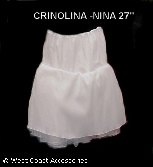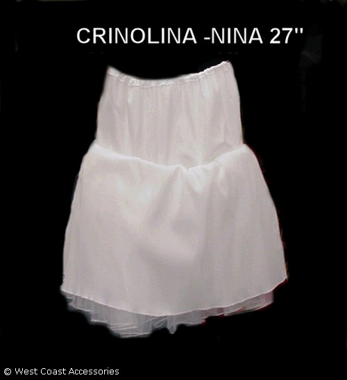 CRINOLINA-NINA DRAWSTRING-NYLON. TULLE-UNDERSKIRT -WT LENGTH 27" AVAILABLE LENGTH18"22"24"