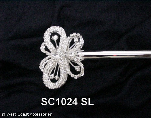 SL RHINEST. SMALL BUTTERFLY SCEPTER TOP :1 3/4" LONG 15" AVAILABLE SILVER.GOLD