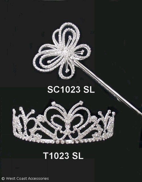 RHINESTONE TIARA WITH BUTTERFLY SL/ SCEPTER1023 SL SET
