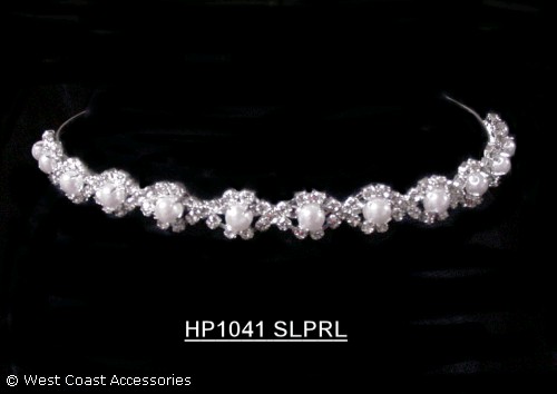 RHINESTONE HEADPIECE WITH PEARL. SILVER. HEIGHT 0.5"