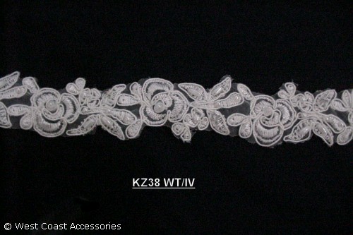 BEAD.ORGANZA LACE WITH PEARL WT/YDS HEIGHT 1.3/8"