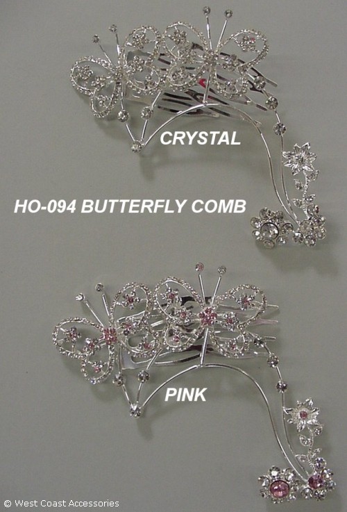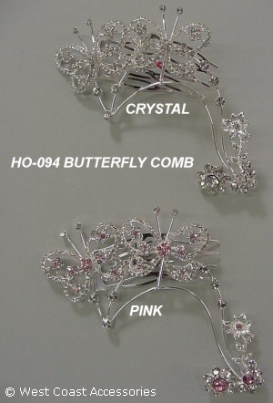 Butterfly comb available in light pink or crystal clear rhinestones.