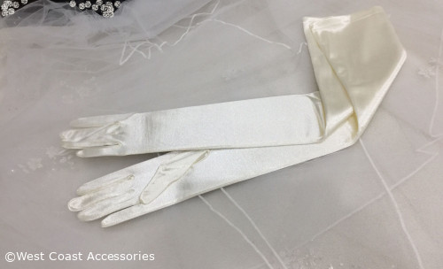 16BL Satin Gloves Adult Opera Length Ivory. 23.5" long