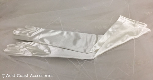 16BL Satin Gloves Adult Opera Length Diamond White. 23.5" long