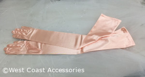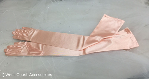 16BL Satin Gloves Adult Opera Length Peach. 23.5" long