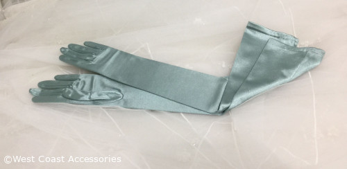16BL Satin Gloves Adult Opera Length Premier Blue. 23.5" long