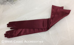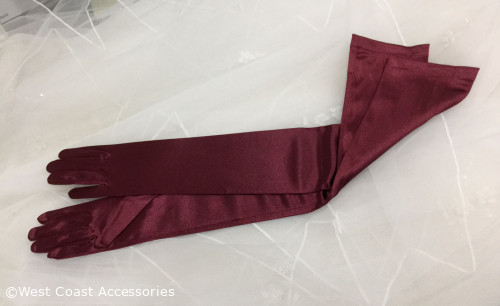 16BL Satin Gloves Adult Opera Length Burgundy. 23.5" long