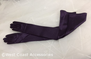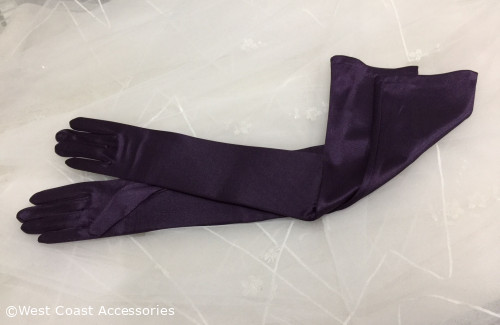 16BL Satin Gloves Adult Opera Length Eggplant. 23.5" long