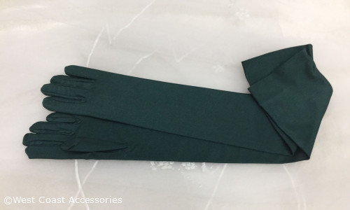 16BL Satin Gloves Adult Opera Length Hunter Green. 23.5" long
