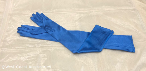 16BL Satin Gloves Adult Opera Length Royal Blue. 23.5" long