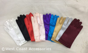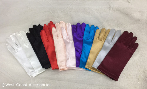 2BL Satin Gloves 8-12 Years. 7.5" Available Color : White, Ivory, Black, Blue, Burgundy, Fuchsia Lt. Gold, Lt. Pink, Peach, Purple, Red, Silver, Turquoise