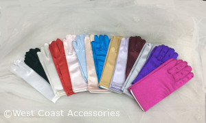 2BL Children Satin Glove. 8" Available Color : White, Ivory, Black, Lt. Blue, Burgundy, Gold, Lt. Pink, Lt. Lavender, Peach, Purple, Red, Silver, Turquoise.