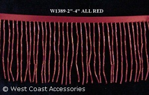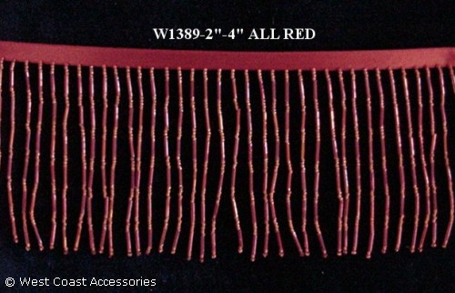All red beaded fringe with bugle beads. 4" in length. Also available in 2".