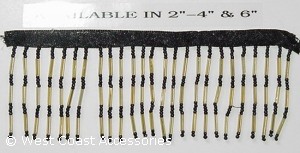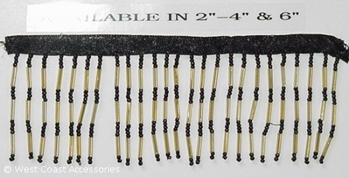 Black and gold combination beaded fringe with bugle beads. 2" in length. Also available in 4" length.