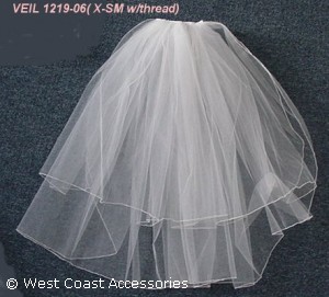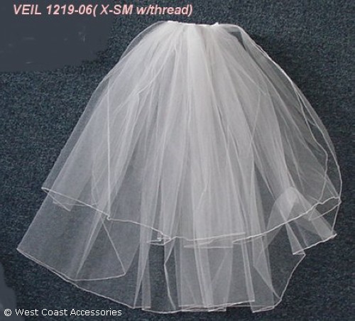 Extra small white veil with thread edging. Also available in ivory. FIRST LAYER:19" SECOND: 25"
