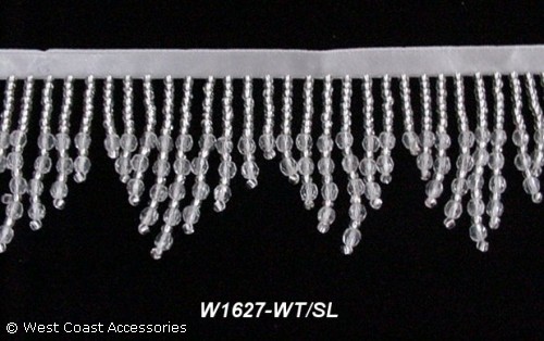 Silver/white zig-zag beaded fringe.