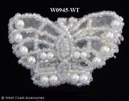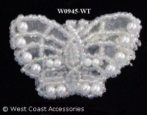 White beaded butterfly motif trim.