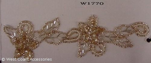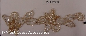 Light brown and gold beaded flower motif trim.