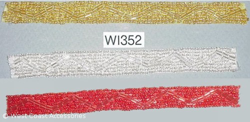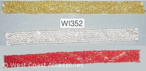Silver, red, and gold narrow beaded motif trim.