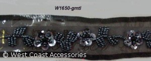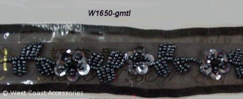 Black/gunmetal beaded flower motif trim.