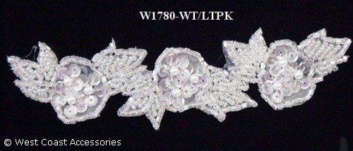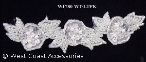 White beaded motif trim with sequins.