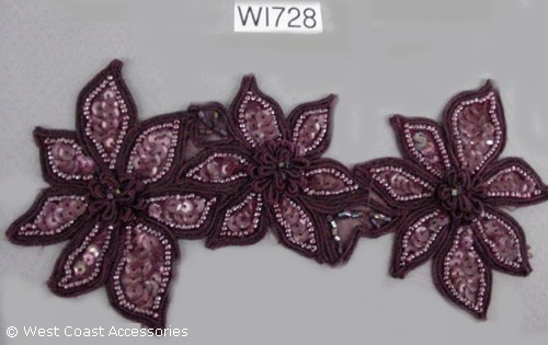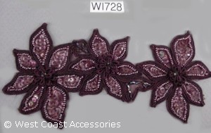 Wine beaded chorded flower motif trim. Also available in white and green.