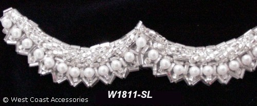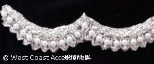 Wavy silver bead and pearl motif trim. AVAILABLE GOLD