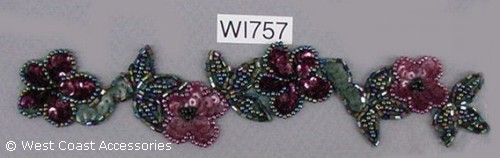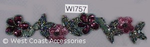 Wine and green beaded flower/leaf motif trim.