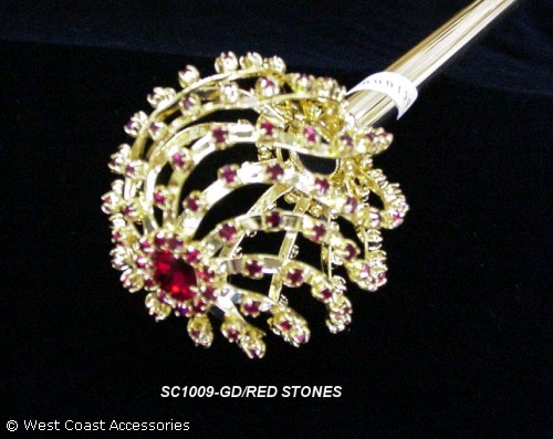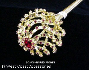 RHINESTONE SCEPTER GOLD WITH RED STONE ( 19 INCH LONG )