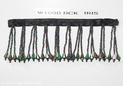 Black/iridescent beaded fringe with tear drop. Also available in all black and in white/iridescent.2.5"