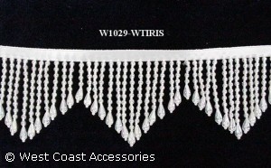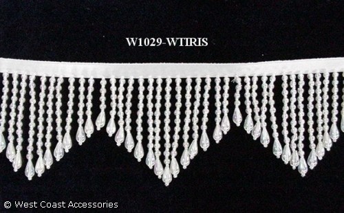 White/iridescent beaded zig-zag fringe. Also available in black/iridescent.
